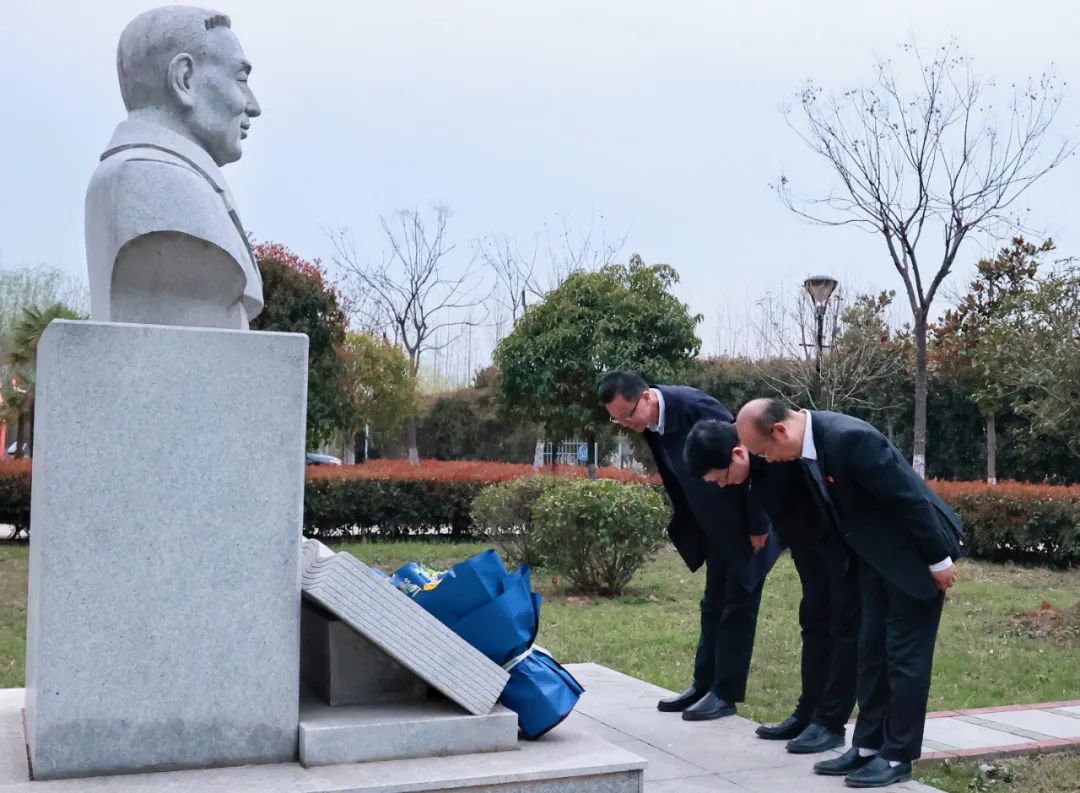 座談會結(jié)束后,聶偉迅、韓良炎、李中澤在愛國教育家、南開大學(xué)老校長張伯苓先生的雕像前獻(xiàn)花、鞠躬,表達(dá)了對一代偉人的緬懷之情。