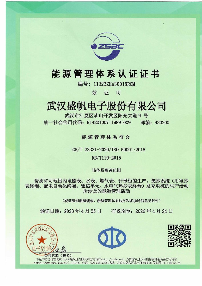 能源管理體系認(rèn)證證書