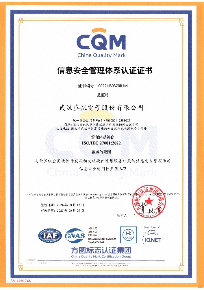 信息安全管理體系認(rèn)證證書